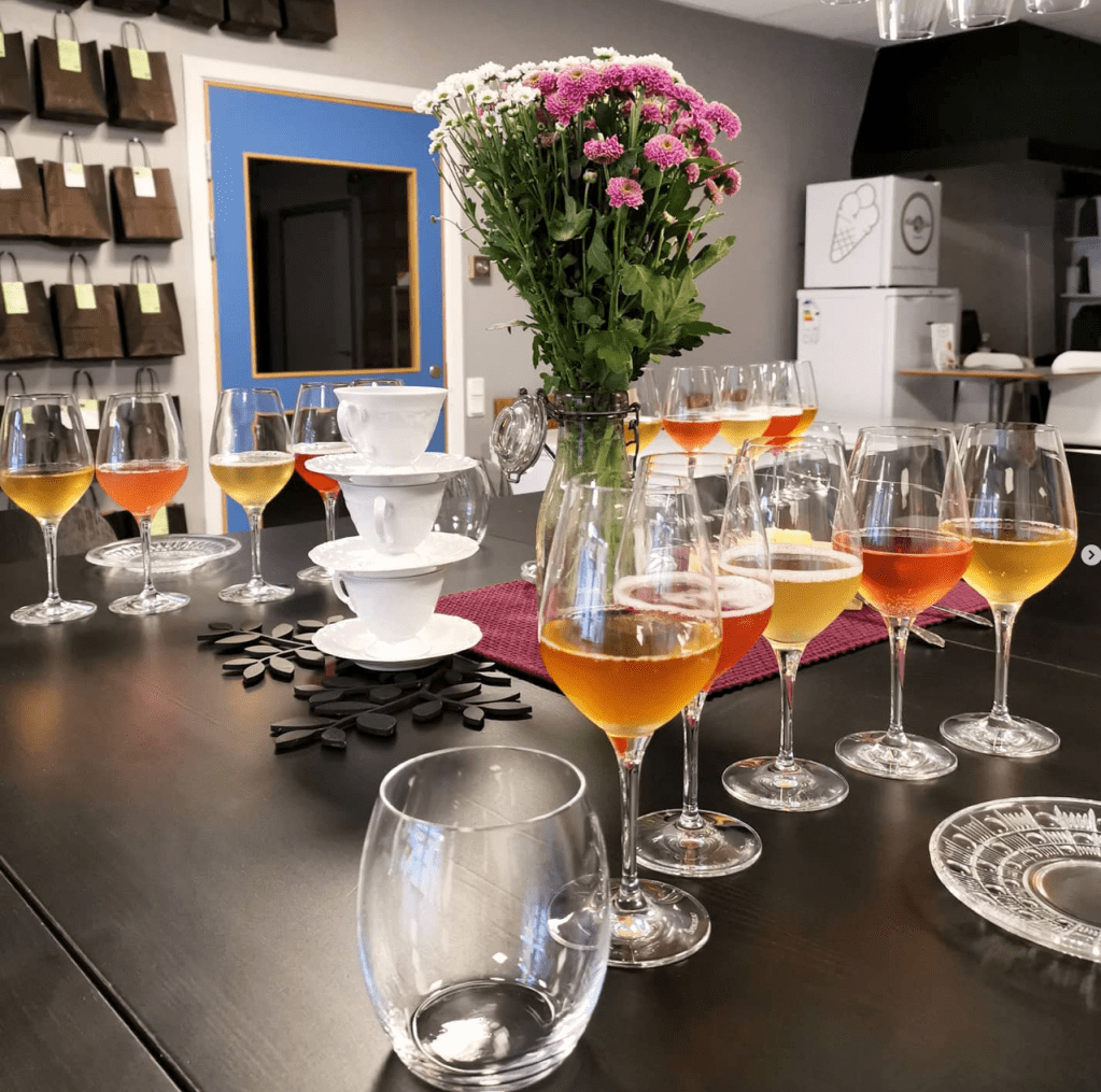 Kombucha, precis som andra drycker, kan smaka på många olika sätt. På en kombuchaprovning och workshop smakar vi på kombuchor från olika tillverkare. Vi känner och tittar på de olika karaktärerna; färgen, doften och smaken.