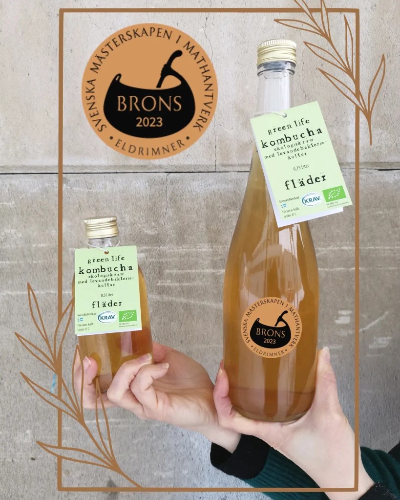 Vi är stolta och glada över att vår fläderkombucha vann brons i kategorin kombucha under SM i mathantverk 2023, arrangerat av Eldrimner.